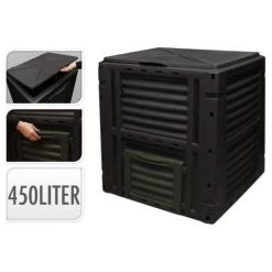 Handig en compact compostvat dat zowel in de grote tuin als in een kleine tuin kan gebruikt worden. Dit zwarte kunststof vat heeft een capaciteit van 450 liter.