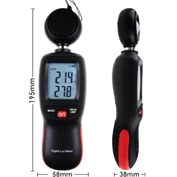 Het toestel toont de Lux verschilwaarde, de max waarde en de min waarde. De gegevens kunnen makkelijk met de HOLD knop worden bijgehouden. De eenheden zijn aan te passen van Lux-Celsius, Lux-Fahrenheit, Foot Candles-Celsius of Foot Candles-Fahrenheit