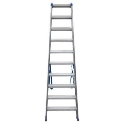 De dubbele aluminium trapladder SPARTA DUO kan langs beide kanten worden gebruikt en is voorzien van gelaste antisliptreden.