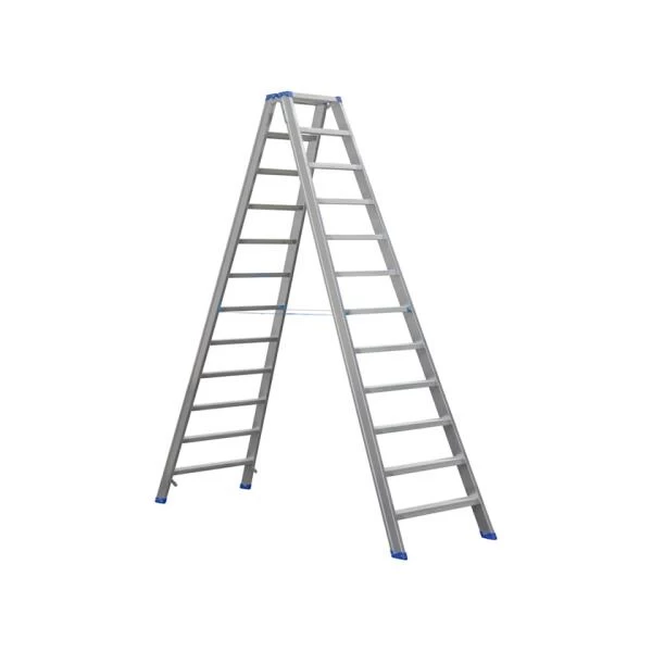 De dubbele aluminium trapladder SPARTA DUO kan langs beide kanten worden gebruikt en is voorzien van gelaste antisliptreden. Door de extra brede treden van 80 mm is deze gemakkelijk en veilig in gebruik. Langs beide zijden van de ladder bevinden zich evenveel treden, met een tussenafstand van 23 cm.