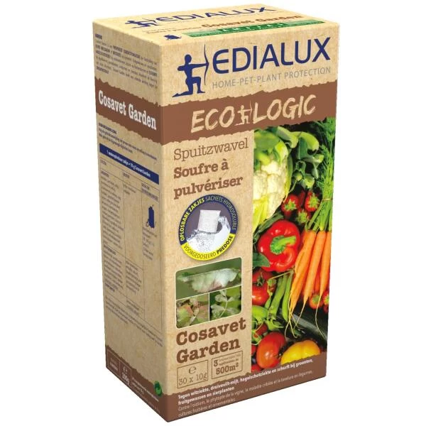 Cosavet garden is een fungicide dat werkzaam is tegen witziekte in vele teelten. Het heeft een preventieve contactwerking, wat betekent dat kieming van schimmels wordt vermeden. Verdere aantasting van de plant kan hiermee ook vermeden worden. Reeds voorgedoseerd in handige wateroplosbare zakjes waardoor het product niet stuift.