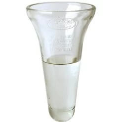 Het aantal mm neerslag is eenvoudig af te lezen op deze stevige glazen maatbeker. De hoeveelheid neerslag moet minstens eenmaal per dag gemeten worden om het verdampen zoveel mogelijk tegen te gaan.