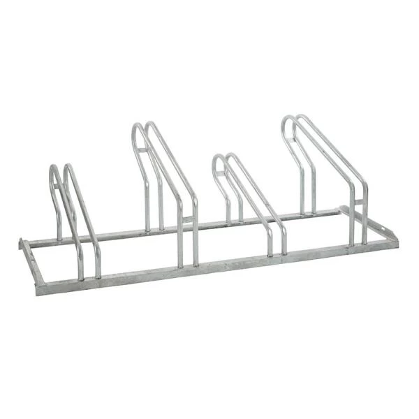Fietsenrek extra zwaar model 4 fietsen. Warm gegalvaniseerd: roestbestendig. Verschillende hoogtes. Voorzien om meerdere fietsrekken aan elkaar te bevestigen.