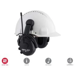 Comfortabele gehoorbescherming om op een veiligheidshelm te bevestigen. Beschermsysteem met ingebouwde FM stereo radio en omgevingswaarneming.