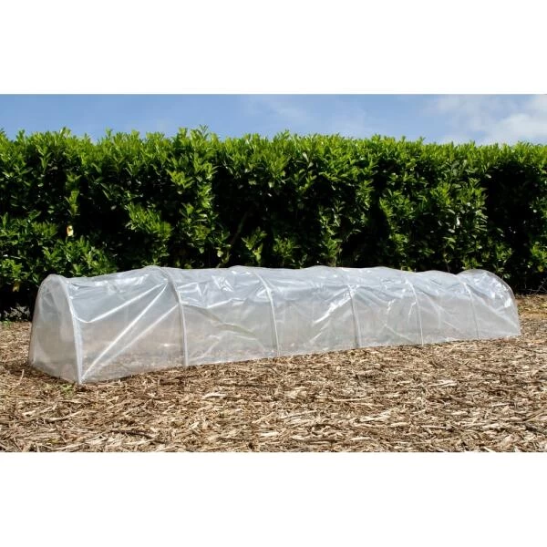 Kweektunnel met folie en zeven metalen bogen voor de opkweek van bloemkolen, spinazie, wortelen, radijzen, slasoorten en kruiden om de oogst te vervroegen. Deze tunnel beschermt jouw planten tegen ongunstige weersomstandigheden, ongedierte en koude. De plastieken boogserre met een lengte van 3,1 meter en een hoogte van 40 cm, schept een evenwichtig klimaat waarin de planten beter groeien en je vroeger kan oogsten.