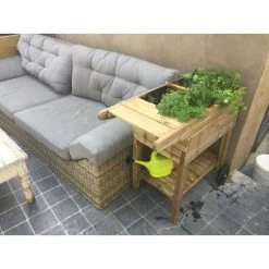 Een leuke variant van de moestuintafel. Deze tafel is gebaseerd op het eenvoudig principe van een tuinkar. Twee van de vier poten van deze kweekbak zijn voorzien van een stevig rubberwiel zodat deze moestuintafel handig verrijdbaar is.