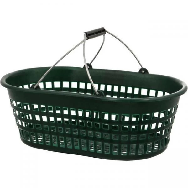 Dit mandje kan het best vergeleken worden met een handig winkelmandje. Het heeft een ovalen vorm en twee ijzeren beugelhandgrepen die bovenaan samenvallen in een kunststofhouder waardoor de handgrepen goed in de hand liggen.