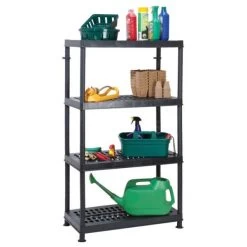 Heavy duty opbergrek voor in de tuinkas, het tuinhuis of de garage. Heavy duty betekent dat elk van de drie legboorden tot 50 kg belast kan worden. De legboorden zijn geperforeerd en dus ook geventileerd waardoor ze een meerwaarde hebben in de tuinkas.