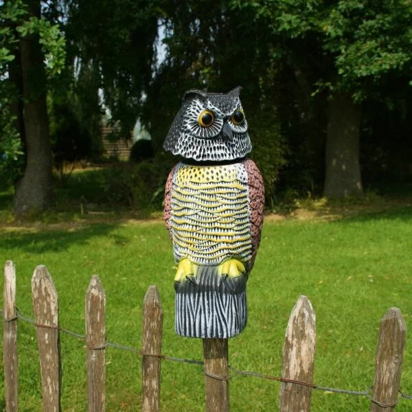 De kop begint al vrij snel te bewegen als er een klein beetje wind is. De vorm van de uil in combinatie met de bewegende kop en reflecterende ogen zullen het ongedierte in geen geval ontgaan.