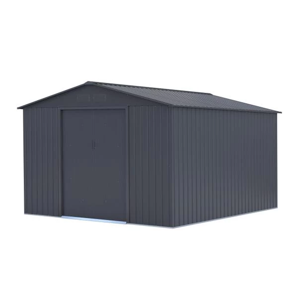 Het Archer tuinhuis van Sinolily is voorzien van een dubbele schuifdeur aan de voorzijde. De wanden, alsook het dak zijn opgebouwd uit roestvrij staal, afgewerkt met een kwalitatieve coating in antraciet. Dit maakt het metalen tuinhuis onderhoudsarm. Het zadeldak helt licht over waardoor het niet binnen regent.
