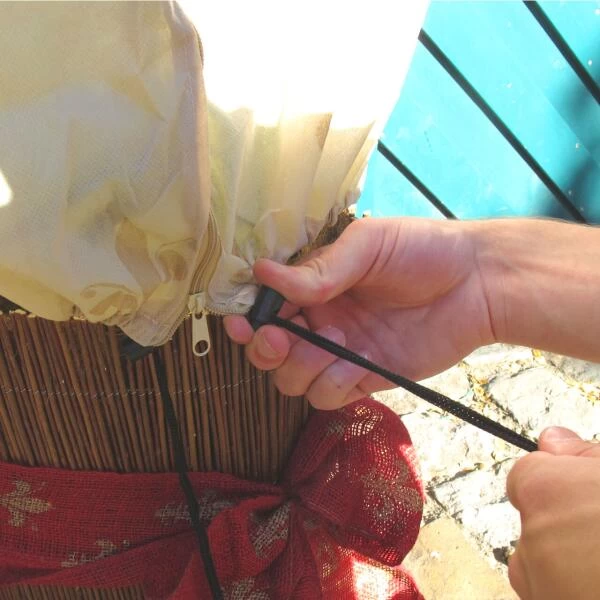 De beschermhoes is voorzien van een rits waardoor je de planten snel kan inpakken, controleren en terug kan uitpakken. Met de voorziene trekkoord kan je de hoes stevig rond de pot aanspannen. Dankzij de rits en de trekkoorden zit de thermohoes als gegoten rond jouw planten zodat hevige wind er, bij het correct aanbrengen, praktisch geen vat op kan krijgen. Bij gewone vliesdoeken is dit tot ieders frustratie vaak wel het geval.