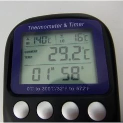 Ook in de keuken kan deze temperatuurmeter handig van pas komen voor het meten van kerntemperaturen van vlees of brood. Werkt zeer nauwkeurig en heeft alarmfunctie bij overschrijden van vooraf in te stellen minimum en maximum waarde. De meter beschikt ook over een countdown timer functie met alarm.