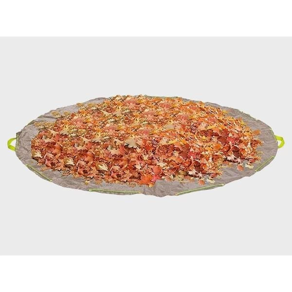 Dit sterke grondzeil maakt tuinieren gemakkelijker. Het ronde zeil leg je open op de grond en je verzamelt er alle bladeren, snoeiafval of scheerlingen op met een bladhark. Deze ronde bache heeft een trekkoord langsheen de buitenrand en daarmee snoer je het zeil vlot dicht. Het zeil sluit zich rondom het tuinafval en jij neemt de buidel zo vlot mee naar de composthoop, aanhangwagen of koffer van jouw auto dankzij 2 draaglussen.