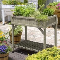 Deze functionele en stevige moestuintafel is erg ergonomisch. Kunststof voetbeschermers tegen opstijgend vocht worden meegeleverd. Op het opbergplankje aan de onderkant kan je tuingereedschap of andere spullen leggen. Je kan er natuurlijk ook nog bijkomende potjes tuinkruiden plaatsen zodat je nog meer kweekruimte hebt.