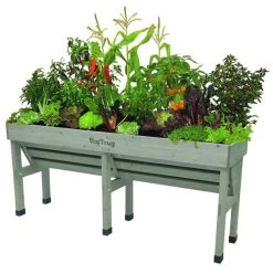De grote verhoogde plantenbak heeft alle voordelen van een groeibed maar dan binnen het handbereik van jongere en oudere tuiniers zonder dat men zich hoeft te bukken of te knielen.