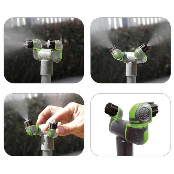 De vernevelaar heeft een universele tuinslangaansluiting die op eender welke set past en voert het water naar boven alwaar het doorheen twee afzonderlijke sproeikoppen verneveld wordt. Beide sproeikoppen kunnen afzonderlijk naar hartenwens in eender welke richting worden gedraaid. Zowel van boven als naar onder, alsook van links naar rechts.