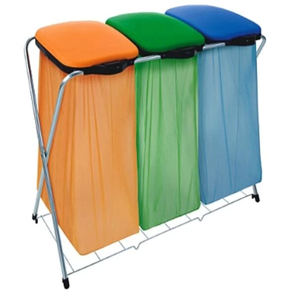 Deze vuilniszakhouder maakt het vullen van vuilniszakken gemakkelijker. Je plaatst drie vuilniszakken in de houders en een deksel sluit elke vuilniszak af. Proper en handig want deze vuilniszakhouder is vlot te verzetten. Ideaal voor garage, werkruimtes en vuilzakken van de gemeente voor restafval of voor plastic, blikjes, papier,…