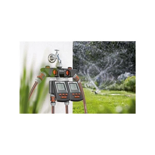 Met de GARDENA 4-weg-waterverdeler sluit je gelijktijdig 4 accessoires aan op één kraan. De uitgangen zijn traploos regelbaar.