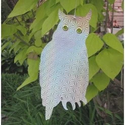 De uilen zijn holografische imitaties met een zeer groot schittering-effect om vogels af te schrikken. Wappert in de wind en schittert in de zon.