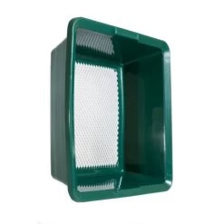 Diepe kunststoffen zeef met een verzinkt stalen raster met ruitvormige fijne mazen. Ideaal voor het zeven van compost, potgrond, zaai- en stekgrond,…