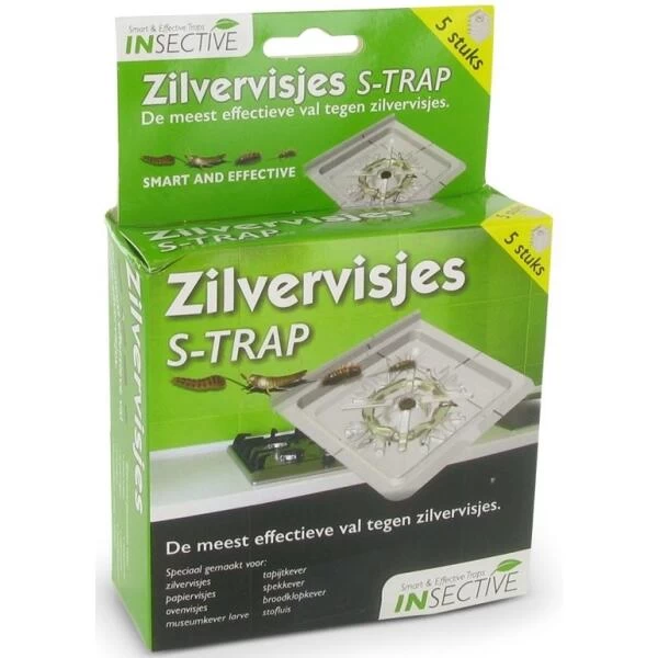 De meest effectieve val tegen zilvervisjes die ook kan ingezet worden voor de bestrijding van papiervisjes, ovenvisjes, larves van de museumkever, tapijtkever, spekkever, broodklopkever en de stofluis.